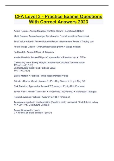 The CFA Institute provides sample questions for each level of the CFA Program. These questions are designed to familiarize candidates with the types of questions that will appear on the exam. Sample questions for the Level 3 exam can be found in the CFA Institute's Candidate Body of Knowledge (CBOK).