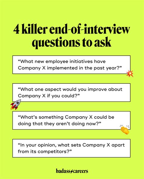 Asking questions at the end of an interview can be a great way to demonstrate your interest in the role and leave a lasting impression on the interviewer. Asking the right questions can help you to gain a better understanding of the job and the company, as well as helping you to decide if the job is right for you. The questions listed above are great examples of questions you can ask at the end of an interview.