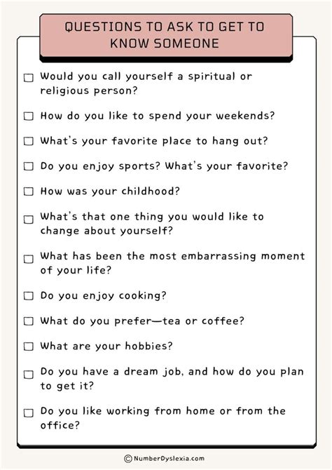 To get to know someone better, it's important to ask questions about their background. This can include things like where they grew up, what their family is like, and what their interests are. Some sample questions include: